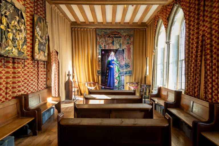 Visitors begin their journey in the historic Gloriette, built by Eleanor in 1278, where the exhibition traces how she transformed Leeds Castle from a Norman fortress into a refined royal residence. Her introduction of cosmopolitan European influences, from tapestries and carpets to tableware and courtly culture, helped establish the castle as a distinctly “queenly” seat of power.